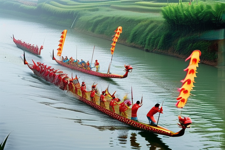 筹备阶段:在比赛前,各参赛队伍会进行充分的准备,包括挑选合适的龙舟、制作龙舟模型、训练参赛队员等,还会进行场地勘查,确保比赛水域的安全。