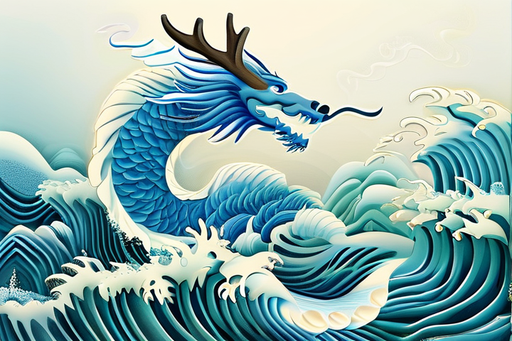 浪花作为自然界中最具力量与激情的元素之一,在龙文化的构图中同样扮演着重要角色。
