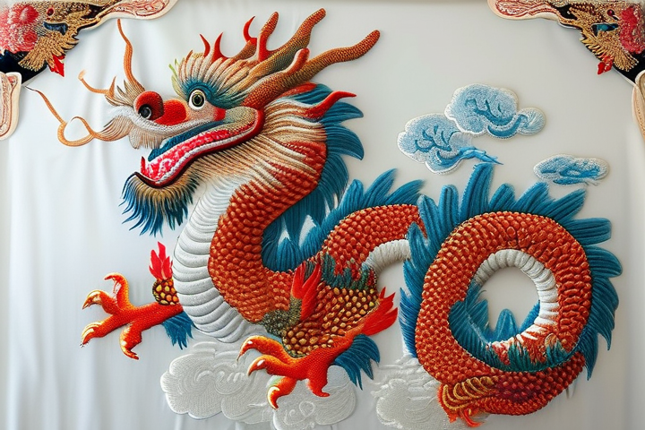 刺绣是一门集艺术性、技术性于一体的传统手工艺,而升龙龙纹则是其中最为璀璨的明珠,通过不同的工艺路线,刺绣师们可以将升龙龙纹这一经典图案巧妙地融入作品之中,展现出其独特的魅力。