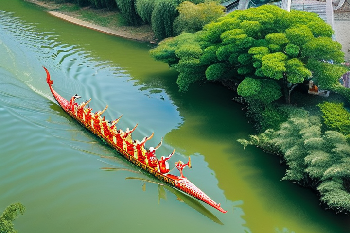 龙身:龙身则是龙舟的主体部分,通常由竹子或木材制成,龙身的长度和宽度决定了龙舟的速度和稳定性。